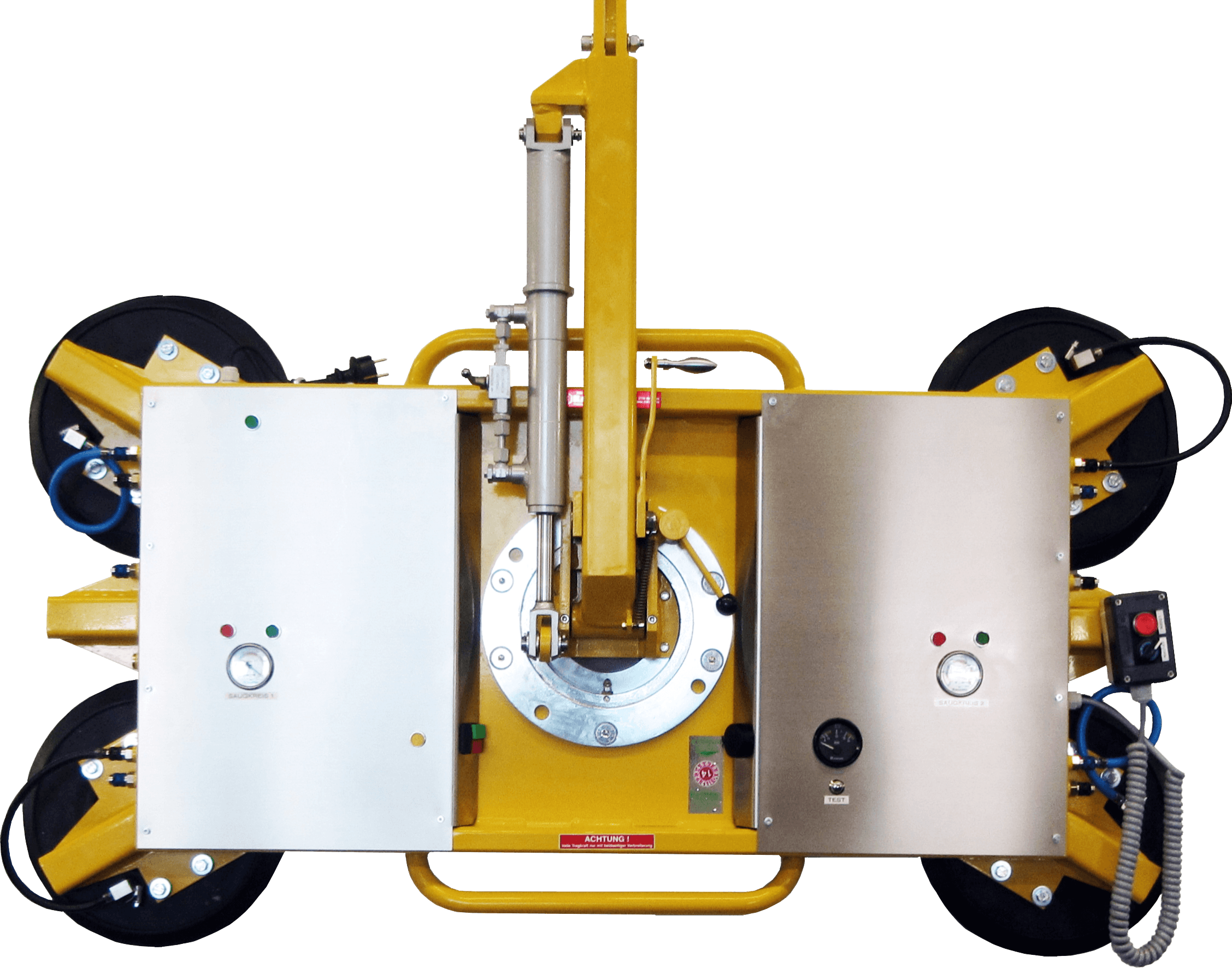 The Slimliner is the lightest suction unit with 900 kg capacity. This creates a large overall payload. It combines high capacity with flexibility. Thanks to the 16-cm- flat construction the Slimliner allows assembling glass in narrow areas. The suction unit can be extended by 6 to 12 suction plates what doubles capacity from 450 to 900 kg.
