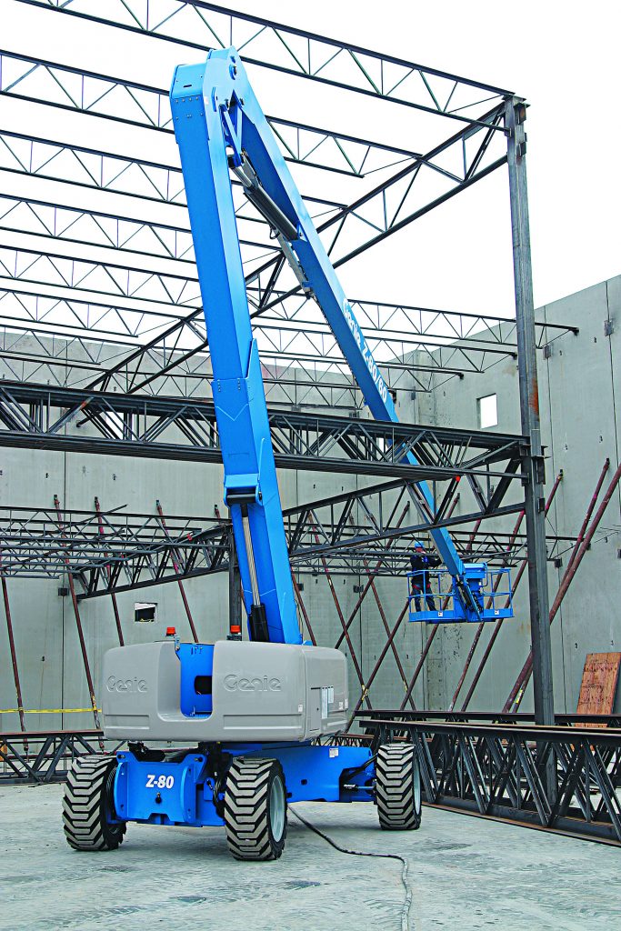 Ferner hat die Z-80 einen innovativen Sekundärausleger für eine übergreifende Höhe von bis zu 8,83 m ohne vorderen Überhang. Mit dem Fast-Mast-System kann die 2,44 m Stahlplattform zum Boden abgesenkt werden, ohne auch den Sekundärausleger absenken zu müssen. Das ermöglicht schnelles und effizientes Anheben und Absenken. Zusätzlich werden bei dieser zeitsparenden Konstruktion Primär- und Sekundärausleger simultan ausgefahren. So erreichen Sie schnell die volle Arbeitshöhe von 25,77 m um produktiv arbeiten zu können.