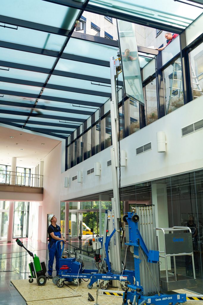 Der Wienold GML500+ kombiniert das Beste aus unseren Eigenentwicklungen: Er liefert Nutzlasten bis 500 kg bei einer Hubhöhe von 8,80 m. Er bietet zwei Mastantriebskonzepte und liefert Energie für elektrische Anbaugeräte.